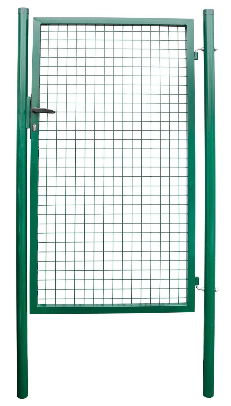 Záhradná jednokrídlová brána s výplňou zváranej siete s okami vo veľkosti 50 x 50 mm a hrúbkou drôtu 4 mm. Úprava je zinok + PVC. Farba zelená. Výška produktu = výška bránky od terénu po vrch krídla.