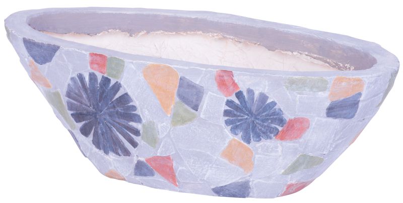Kvetináč v stredomorskom štýle s mozaikou MagicHome dodá šmrnc Vašej záhrade. Krásne vynikne samostatne na terase alebo v kvetinovom záhone. Rozmery: 40,5x19x14 cm.