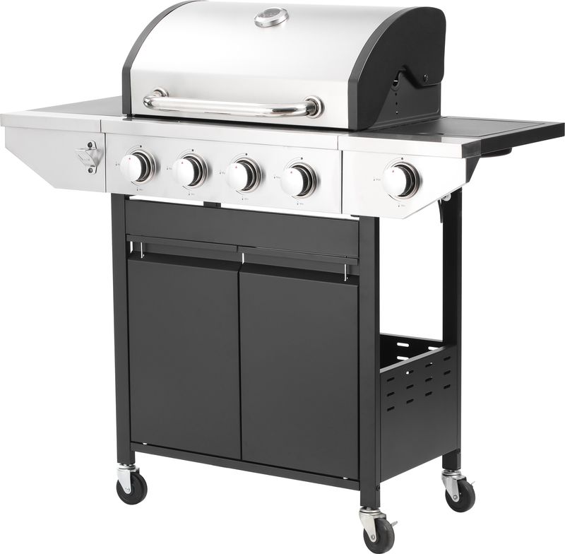 Jeho robustná konštrukcia zabezpečuje stabilitu a dlhú životnosť, zatiaľ čo praktické prvky, ako odkladacie plochy a poklop s teplomerom, uľahčujú prípravu pokrmov. Ideálny na záhradné grilovanie s rodinou a priateľmi.