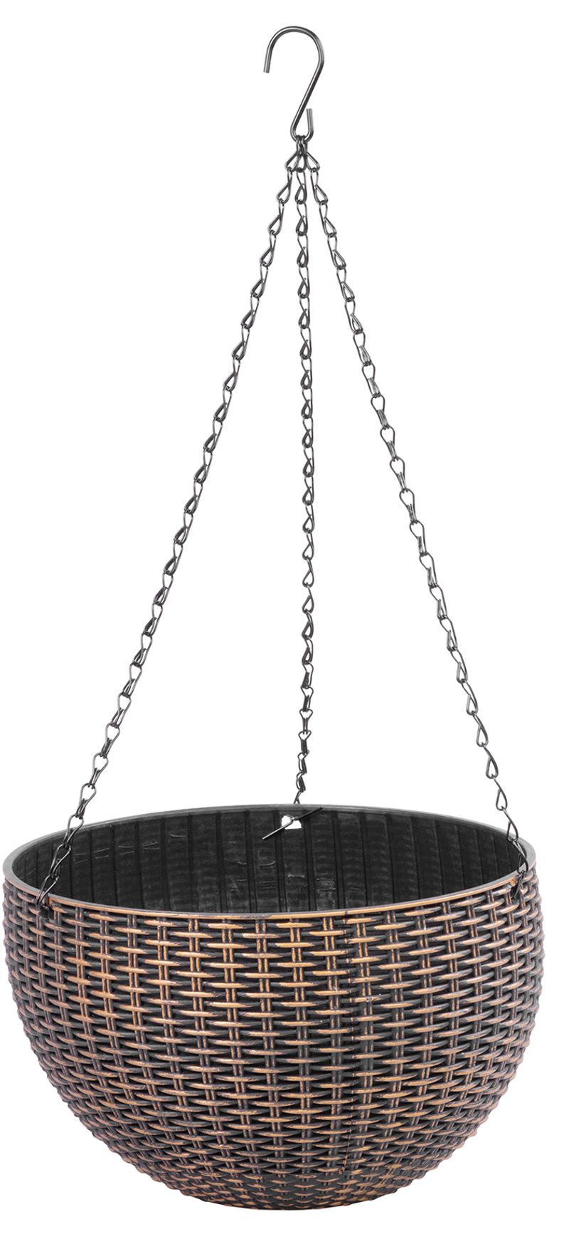 Závesný kvetináč vhodný na celoročné vonkajšie aj vnútorné použitie, na balkón, terasu či záhradu. Je vyrobený z vysoko kvalitného, ľahko umývateľného materiálu, odolný voči mrazu a poveternostným vplyvom. Balenie obsahuje retiazku aj vešiak. Rozmery: 26x16 cm. Farba: zlatá.