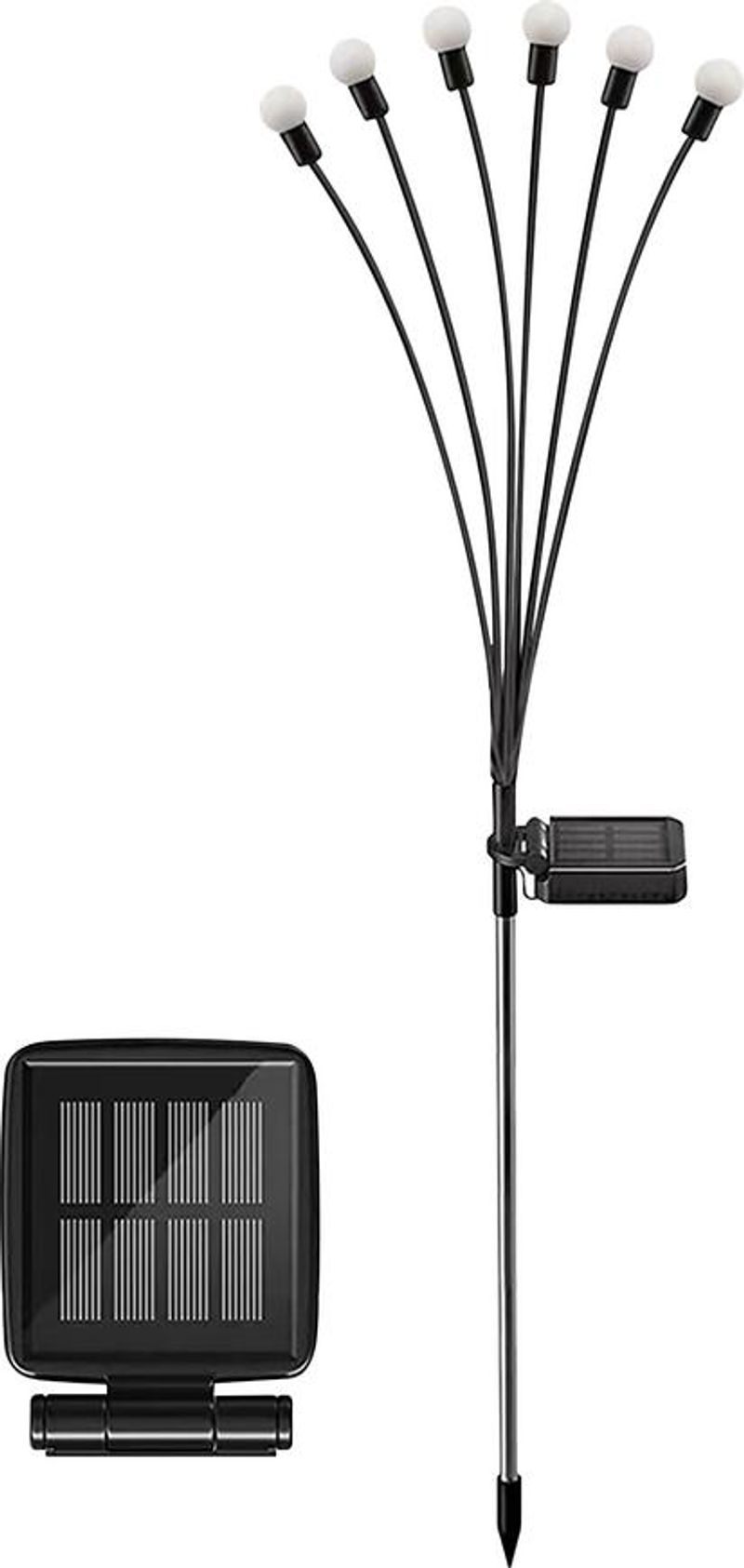 Dizajnová solárna lampa Strend Pro Firefly je moderným doplnkom každej záhrady. Obsahuje 6x LED minilámp. Počas dňa solárny panel konvertuje slnečnú energiu na elektrickú energiu, ktorá sa ukladá do dobíjateľnej batérie. V noci sa svetlo automatický zapne a využíva uloženú energiu. Lampa tak prostredníctvom LED diód svieti príjemným svetlom. Výška tejto lampy je 72 cm.