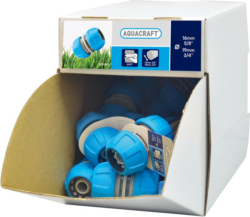 Spojka AQUACRAFT® 552095, SoftTouch 5/8″-3/4″, na spájanie a opravu záhradných hadíc, Sellbox 35 ks
