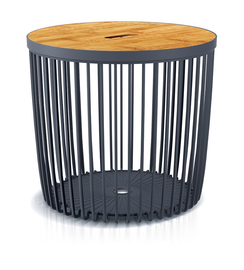 Stolík Clubo je vhodným doplnkom vášho interiéru. Slúži nielen ako stôl, ale aj ako odkladací priestor, keďže je konštruovaný v podobe univerzálneho koša s vkusným bambusovým vekom. Jeho objem je 50 litrov. Farba je antracitová. Jeho rozmery sú 450x410 mm.