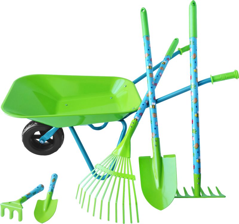 • 6-dielna sada: Obsahuje širokú škálu záhradníckych nástrojov prispôsobených pre detské ruky, čo umožňuje deťom komplexne sa podieľať na záhradných prácach.